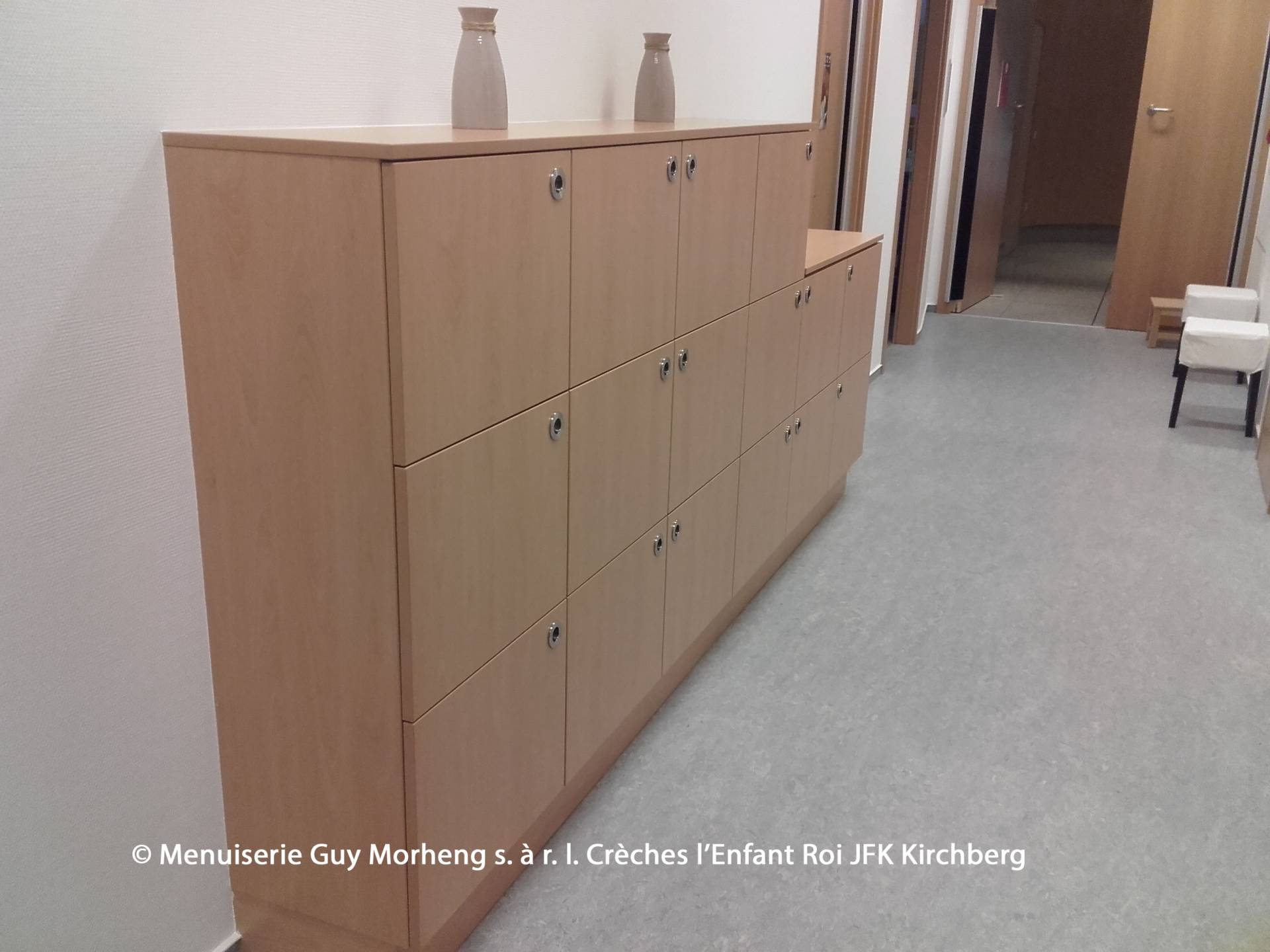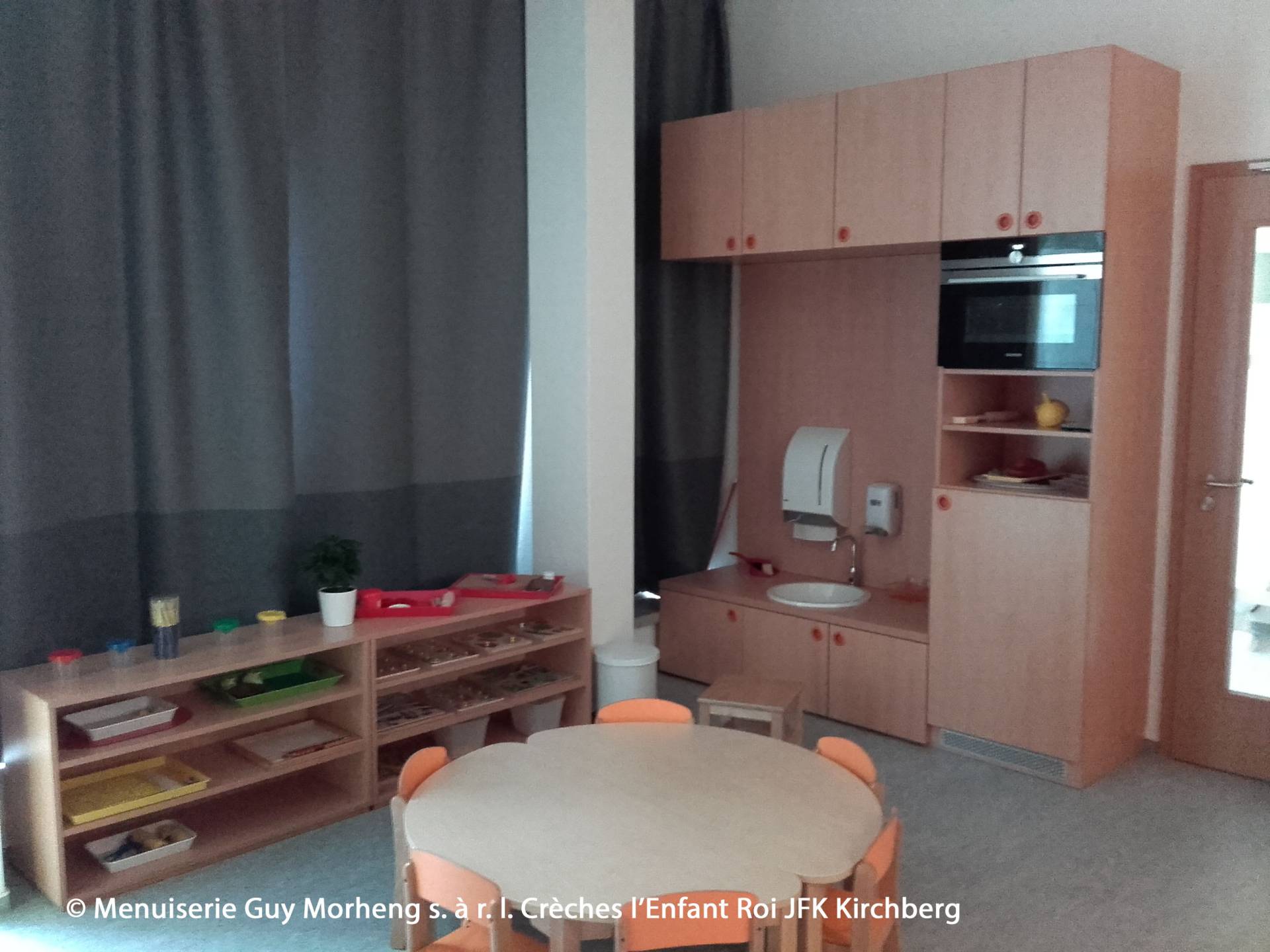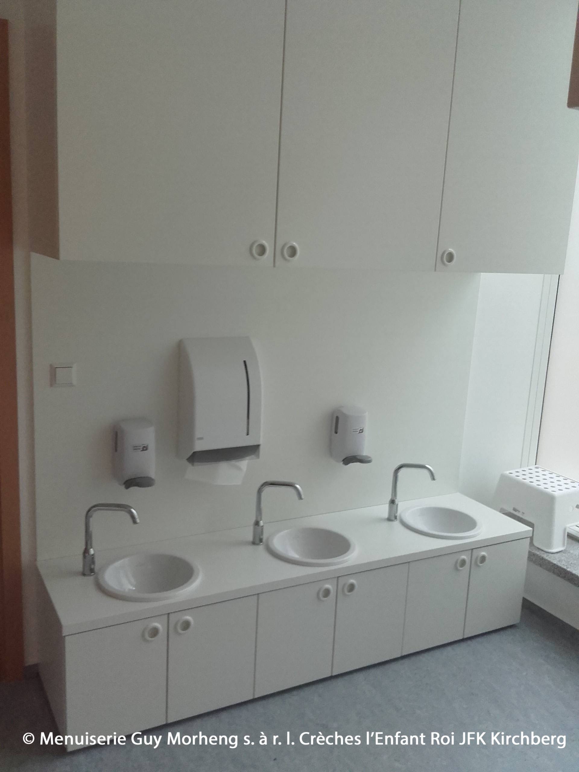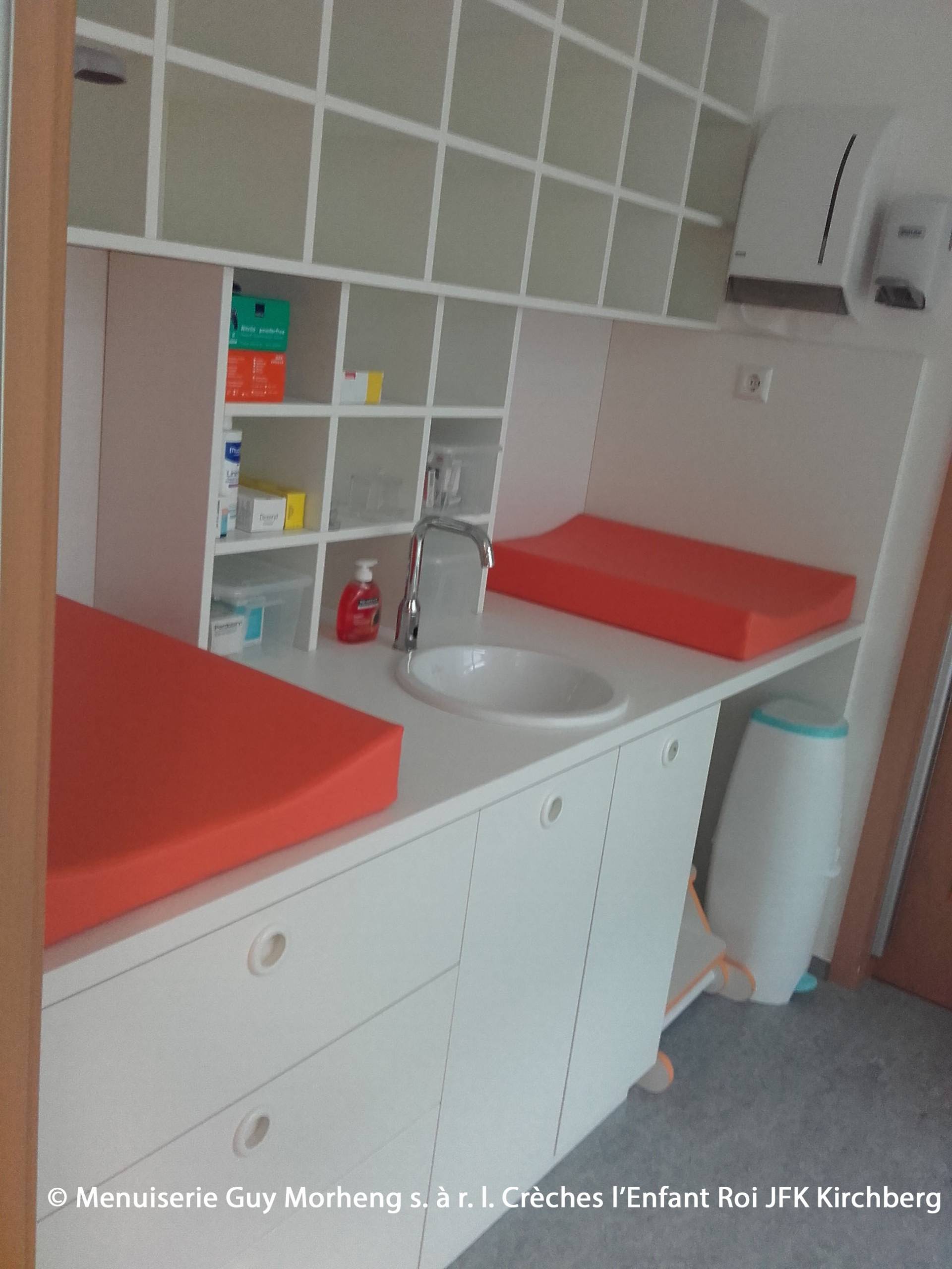 Tous les meubles sont en aggloméré mélaminé. Avec Airtec, les bords ont été finis (Airtec signifie zéro joint, aucune transition n'est visible et les meubles sont résistants à l'humidité).Les normes de sécurité de Luxcontrol ont été appliquées et tous les certificats requis ont été respectés.